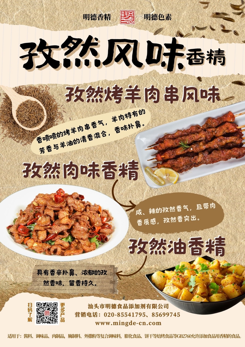 明德孜然風味系列香精 濃郁孜然 烤香誘人汕頭市明德食品添加劑有限公司推出的孜然風味系列香精,涵蓋孜然烤羊肉串風味、孜然肉味香精、孜然油香精等多種調性。產品風味真實,香氣穩(wěn)定,適用于肉制品、調味料、休閑零食、腌制料及復合調味等B端應用,幫助工廠快速打造具有記憶點的孜然風味。