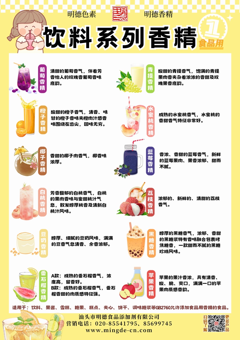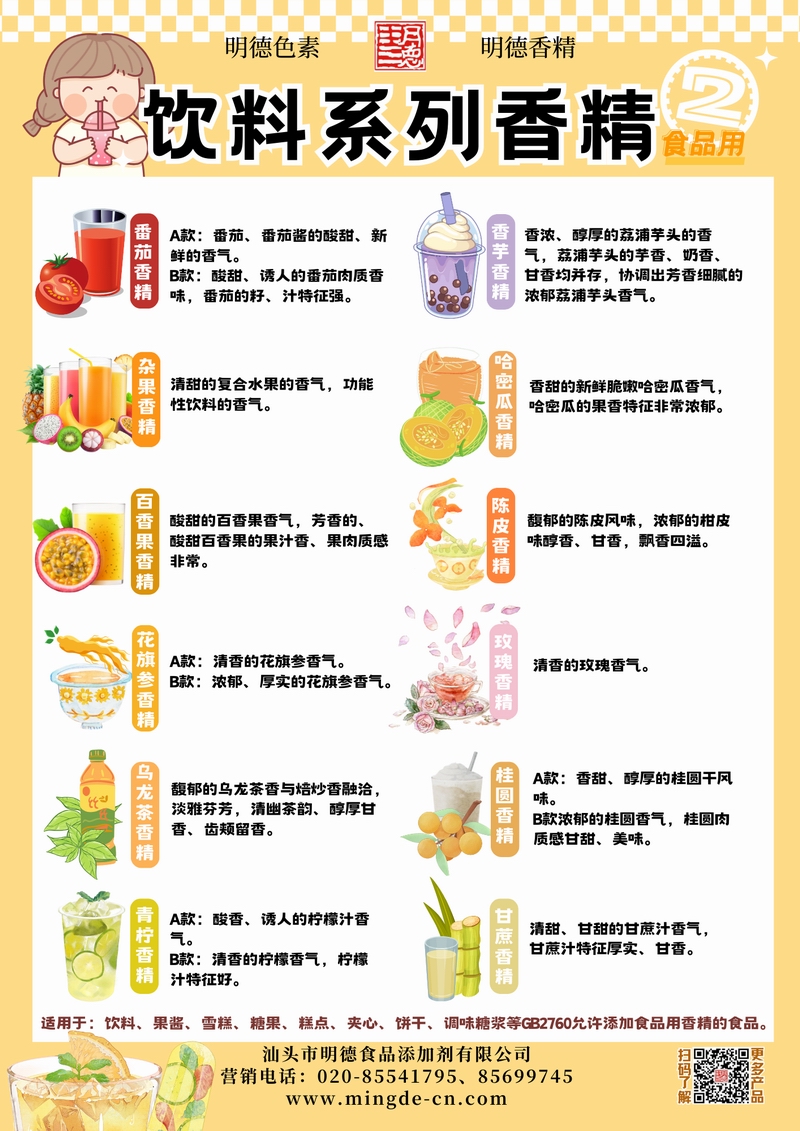 如需獲取不同版本風(fēng)味樣品或配方方案,歡迎聯(lián)系明德團(tuán)隊(duì)。我們致力于為食品工廠提供真實(shí)、安全、高性價(jià)比的香精解決方案。